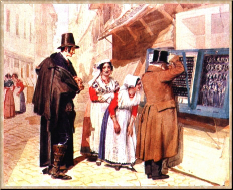 Жених, покупающий серьги для невесты. 1838. Акварель, итальянский карандаш