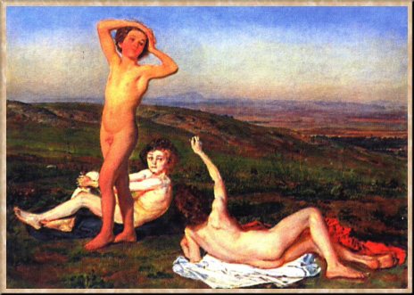 Картина поглотила художника целиком. Неожиданным и не вполне объяснимым исключением стали несколько прекрасных акварельных композиций из современной итальянской жизни, которые он создал в 1839-42 гг., оставаясь при этом принципиальным противником бытового жанра. Ско рее всего тут сказалась его пылкая любовь к Италии, а еще, может быть, общение с великим реалистом Н. В. Гоголем, - общение настолько тесное, что Иванов написал в двух вариантах портрет писателя (1841) и, кроме того, придал его черты одному из персонажей своей картины.